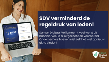 De nieuwe NIS2-wetgeving zorgt bij veel ondernemers voor onrust: er zijn extra regels, u moet van alles aantonen en ondertussen moet de dagelijkse business gewoon doorgaan. De kans is groot dat u denkt: “Wanneer moet ik dit er allemaal bij doen?” Met Samen Digitaal Veilig (SDV) wordt dat een stuk behapbaarder. Het platform helpt om stap voor stap aan de slag te gaan met cybersecurity en NIS2, zonder dat u verdrinkt in papierwerk en extra administratie.